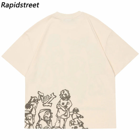 Harajuku Cartoon Girl Cat Japanese Kanji Graphic T Shirt Streetwear Men T-Shirt Summer Short Sleeve Tshirt Tops Tees Unisex