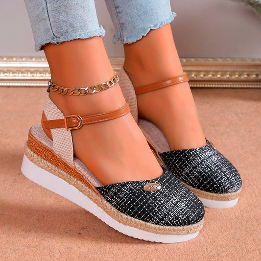 Women Closed Toe Wedge Sandals Women Summer Buckle Strap Gladiator Shoes Woman Fashion Espadrilles Platform Sandalias Mujer 2024