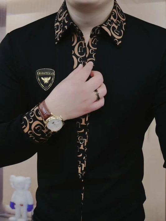Men's Long Sleeved Light Luxury Business Handsome Lapel Korean Version Fake Two Pieces Youth Trend