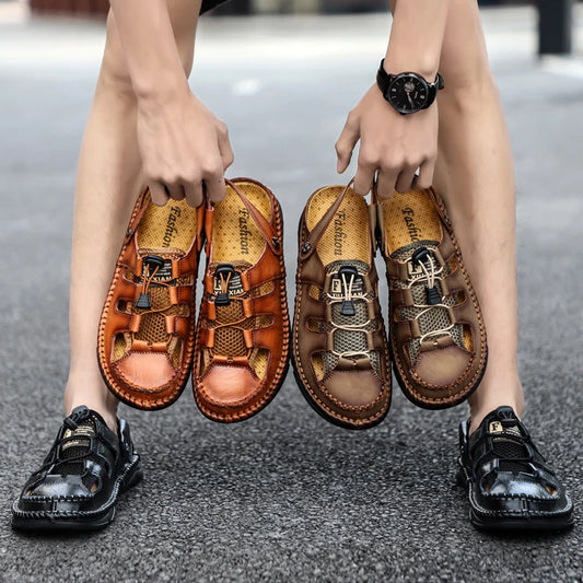 New Leather Men's Sandals Classic Roman Sandals Comfortable Casual Shoes Summer Outdoor Beach Men Flip Flop Breathable Flats