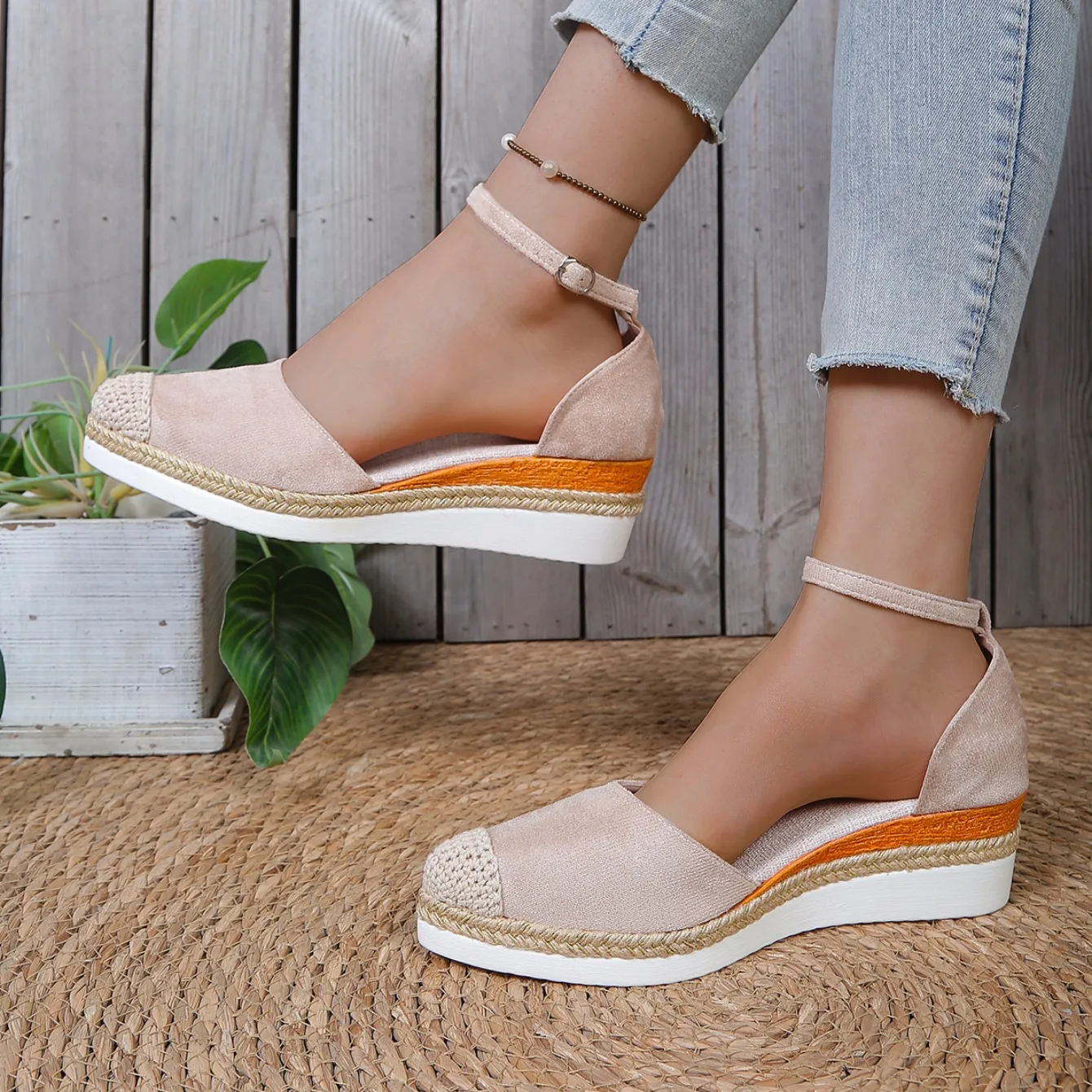 Women Closed Toe Sandals Summer Buckle Strap Gladiator Shoes Woman Wedge Fashion Espadrilles Platform Sandals Zapatos De Mujer
